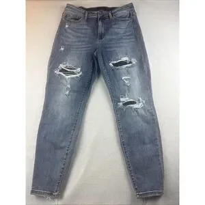 Judy Blue Relaxed Fit Distressed Blue Jeans JR Size 15/32