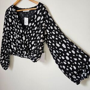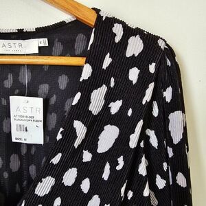 NWT ASTR BLACK WHITE DOTTED DEEP SURPLICE V NECK LONGSLEEVES TOP SIZE M
