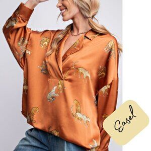 Wild Elegance: Easel Animal Print Satin Blouse NWT
