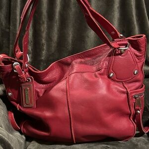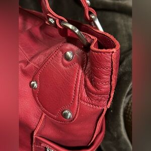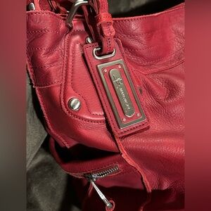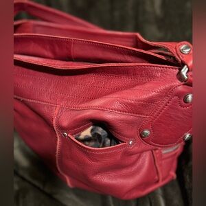 B. Makowsky Large Cherry Red Leather Hobo Shoulder Bag