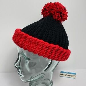 Brand New Condition Unisex Thick Fisherman 2 Tone Pom Beanie (black/red)