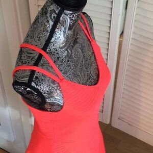 Superdry Neon Pink Polyester Fit & Flare Fun Dress Back zip. Wear 2 ways. XS 2 measurements 16” arm pit to arm pit, 13” across waist for up to 26” waist, 34” length from tip of strap to hem. Stretch fabric carefully cleaned with Lysol Laundry Sanitizer and stored sealed.
