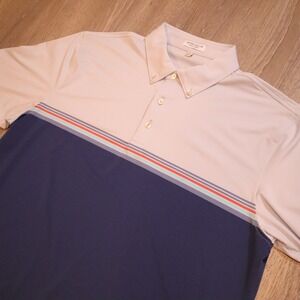 Peter Millar Men's Golf Polo Shirt Short Sleeve Large Navy/Gray Talking Rock