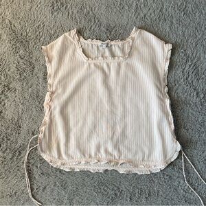 Madewell Women's Ruffle Trim Side Tie Boxy Fit Striped Shirt Top Size Small Boho