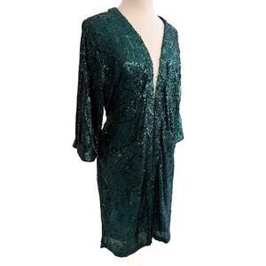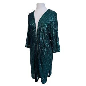 Anthropologie Skies Are Blue Green Sequin Topper Kimono Sash NWT XS/S