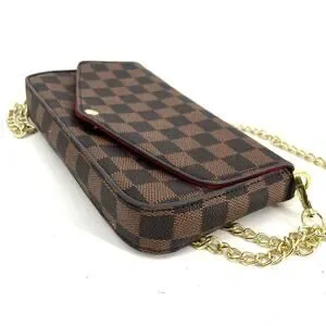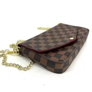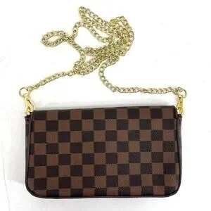 Unbranded Lux Brown Check Small Purse Long Gold Chain Red Lining Faux Leather