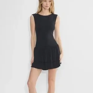 Elegant black mini dress with a tiered skirt from Aritzia, brand Wilfred. Sleeveless design. Ideal for any occasion. Size small, worn a few times.