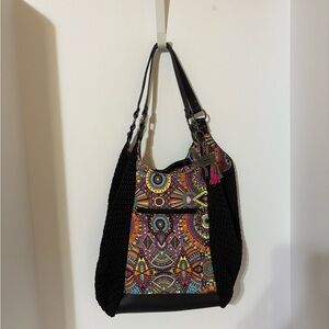 Sakroots bag, characterized by its distinctive bohemian and colorful design.