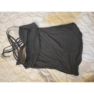 Dark gray sleeveless tank top with a strappy criss-cross back design.