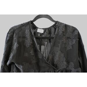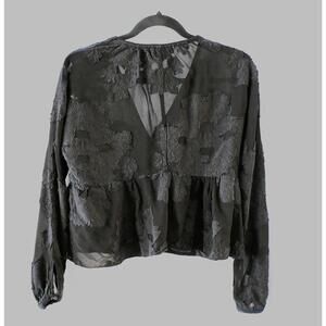 And so effortless. This classic blouse has a subtle peplum hem. The flowy fabric is embroidered.