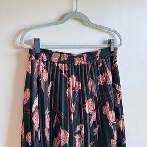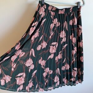 A New Day Green Floral Pleated Midi Skirt Size Large Elastic Waist