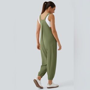 NWT Halara Casual Joggers Overalls Olive Green Waffle Athleisure Jumpsuit Sz L