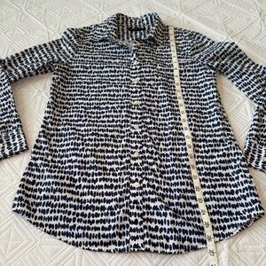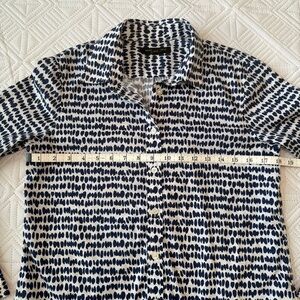 This Banana Republic shirt features a striking black and white pattern, perfect for a casual yet stylish look. Made from lightweight cotton, it offers comfort and breathability. The classic button-down design with a collar adds a touch of sophistication to any outfit.