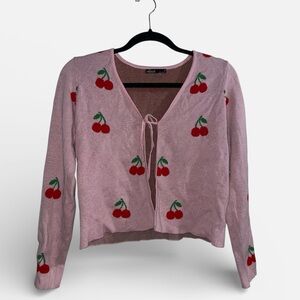 Pink Cherry Embroidered Cardigan