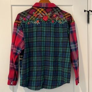 Vintage Multicolor Mixed Plaid and Embroidered Floral Button Down