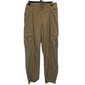 Athleta Women’s Tan Flax Paradise Mid Rise Linen Blend Pull On Cargo Pants Sz M