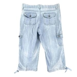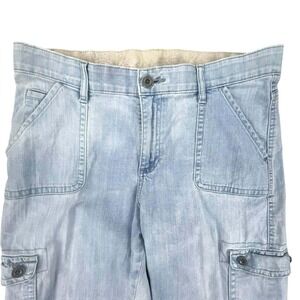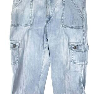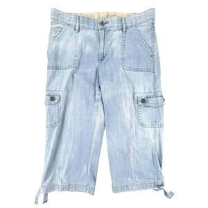 Lee Relaxed Fit Capri Cargo Pants Light Wash Drawstring Hem Women's Size 10