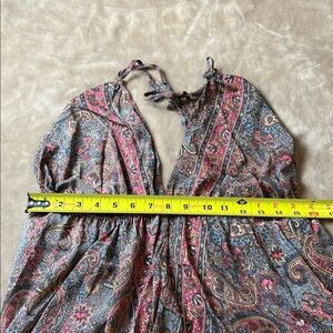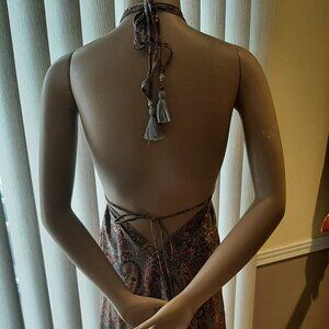 Item keywords: dress; maxi; halter; v-neck; sleeveless; flattering; easy; trendy; feminine; beautiful; flowy; comfortable; paisley; whimsy; ethereal; boho chic; bohemian; costal; tropical; beach; vacation; holiday