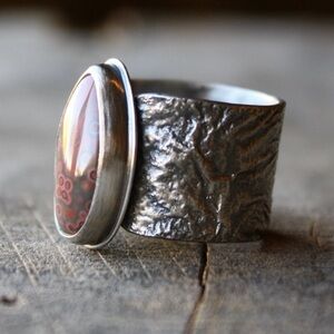 Sterling silver and red ocean jasper moonranger ring size 9.25
