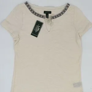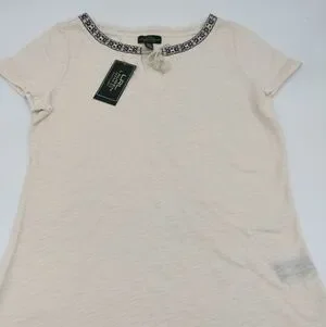 Lauren Jeans Co top from Ralph Lauren. This top is a size S and NWT. This top is done in a soft cream with embroidered collar detail.