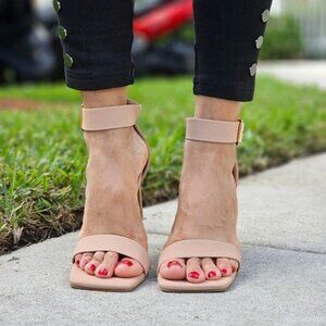 Women's Ankle Strap Block Heel Dress Sandals Nude Color