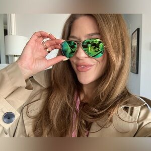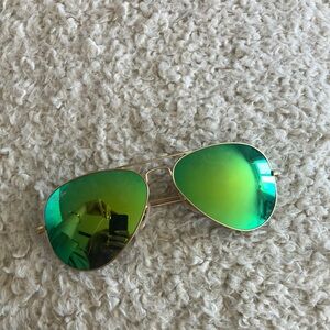 Ray BanGold Aviator Sunglasses with Green Lenses
