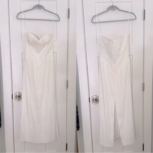 Chic strapless design. Flattering silhouette. Ideal for elegant events.