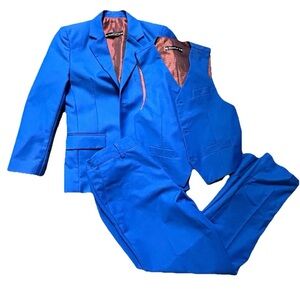 Boys Bright Blue Three Piece Tuxedo Jacket Vest Pants Size 8