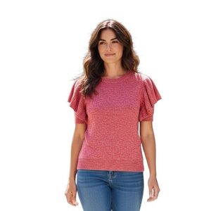 Elevate your style with this chic pink ruffle sleeve top. Perfect for any occasion, this top adds a touch of elegance to your wardrobe.
