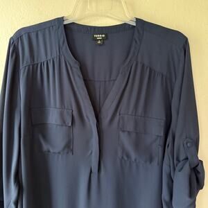 Torrid Harper Size 2X Navy Blue Blouse roll tab sleeves