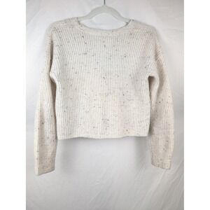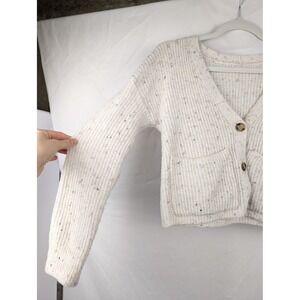 Old Navy Speckled Knit Button Cropped Cardigan Cream Women M Cottagecore Preppy