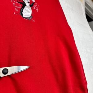 VTG Top Stitch Morning Sun Large Red Collared Sweater Holiday Christmas Penguin