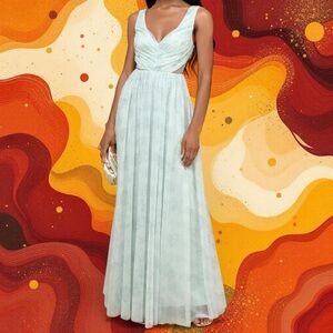 Lulus Blissful Poise Sage Green Floral Mesh Pleated Cutout Maxi Dress