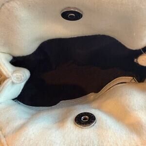 Plush, cozy-luxe little statement bag from Stella McCartney. This is the Falabella Fold Over Mini Crossbody in creamy winter white faux fur with the signature whipstitched chain trim and logo medallion. Works as a top-handle mini tote or hands-free crossbody.