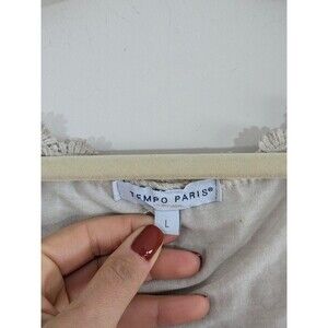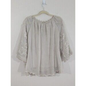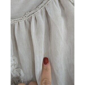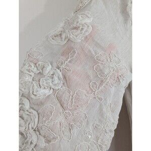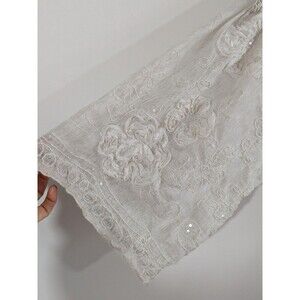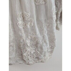 Tempo Paris Ivory Boho Tunic 3D Flowers Sequins Flowy Fairy 3/4 Sleeve Sz L