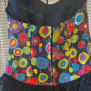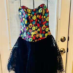 Vintage 1980’s A.J. Bari Colorful Sequin Dress with Black Tulle Sz 8