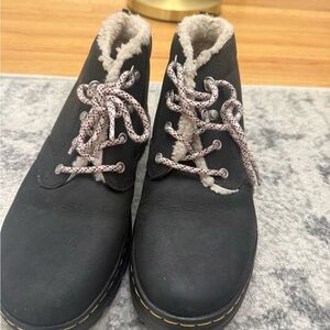 Stylish black boots with cozy fur lining. Features unique patterned laces. Excellent condition only have been worn a few times.