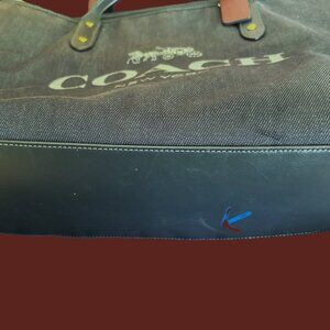 Coach Jacquard City Dark Denim Tote with Navy and Burgandy Leather Gold Hardware 2020