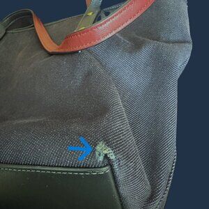Coach Dark Denim Tote Navy and Burgandy Leather Gold Hardware 2020 with Hang Tag