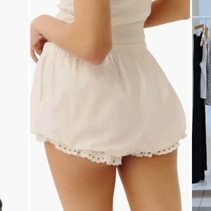 Scalloped eyelet trim details these stretchy organic-cotton shorts cut in a charming bloomer silhouette and topped with an elasticized-drawstring waist.