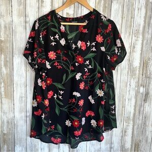 Elegant black women's top featuring a vibrant floral design. Perfect for adding a touch of color to your wardrobe.