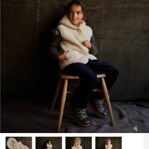 Embrace warmth with this oversized unisex cream sherpa vest. Features a cozy hood and button details. Ideal for layering. New with tags!
