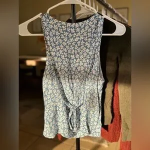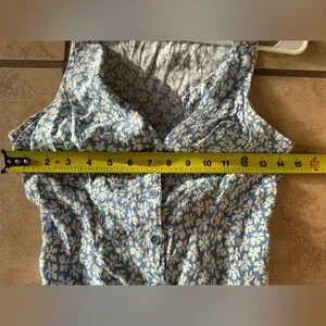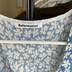 Charming floral blouse by Reformation. Features a blue and white pattern. Ideal for casual outings.