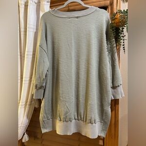 Stylish ribbed knit sweater. Light gray color. Ideal for layering. Pre-loved but in good condition. Size Large.