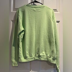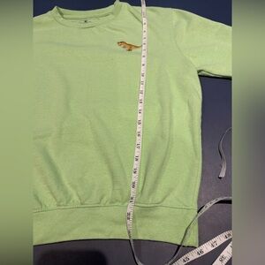 Adult lime green fleece sweatshirt with a fun embroidered T.rex detail. What a great sweatshirt for any dinosaur lover. Cotton blend. Machine washable. Super soft.