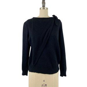 Vintage Bill Blass Silk Angora Wool Black Sweater with brow tie at the shoulder and front flap