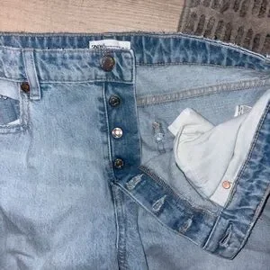 Zara straight leg Jean. Mid-rise. Full button fly. Super cute. Good condition. Light wash. Sz 12.