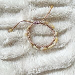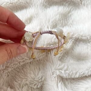 Boutique Carved Jade Floral Macrame Bracelet Adjustable Y2K Boho
