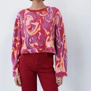 2/$30 | Zara cropped knit marbled jacquard sweater (size M)