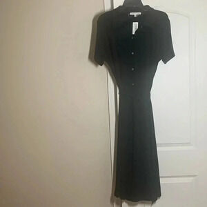 Preston & York Shirt Dress Tie Waist Black Sz Large NWT